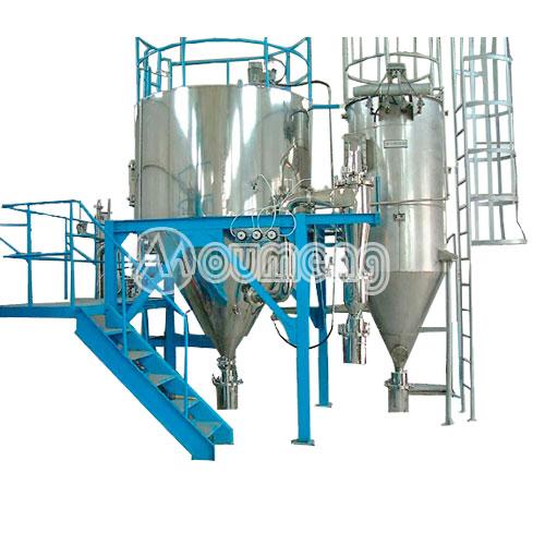 有機(jī)溶劑噴霧干燥機(jī)是系統(tǒng)組成一個封閉的循環(huán)回路,載熱體可以循環(huán)使用也叫閉式循環(huán)噴霧干燥機(jī)。對于揮發(fā)物是有機(jī)化學(xué)溶劑、有毒或逸出后能對人身、環(huán)境造成危害物料的干燥,料液中含有的有機(jī)溶劑或產(chǎn) 品是易氧化、易燃、易爆的物料,一般情況下,需用這種流程的物料都是不能接觸氧氣的,所以載熱體大多使用惰性氣體(如氮?dú)?、二氧化碳?/span>);此種方式又稱惰 性氣體干燥。從干燥器排出的尾氣,經(jīng)過氣固分離后還要經(jīng)過冷凝器回收溶劑或去除濕分,再經(jīng)加熱器升溫后進(jìn)入干燥器進(jìn)行循環(huán)使用。通過載熱體和閉式循環(huán)方 式,我們可以有效的避免物質(zhì)干燥遭遇高溫危險、防止噴霧干燥過程中與氧氣接觸,粉塵90%以上回收等。