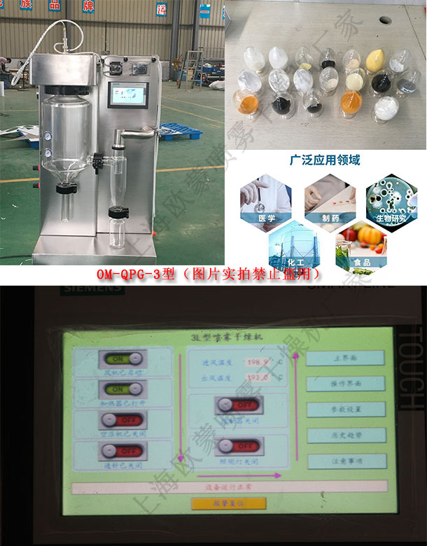 實驗室小型噴霧干燥機適用于高校、研究所和食品醫(yī)藥化工企業(yè)實驗室生產(chǎn)微量顆粒粉末,對所有溶液如乳濁液、懸浮液具有適用性, 適用于對熱敏感性物的干燥如生物制品、生物農(nóng)藥、酶制劑等。因為所噴出的物料只是在噴成霧狀時才受到高溫且是瞬間受熱,故這些活性材料在干燥后仍維持其活性成份不變。